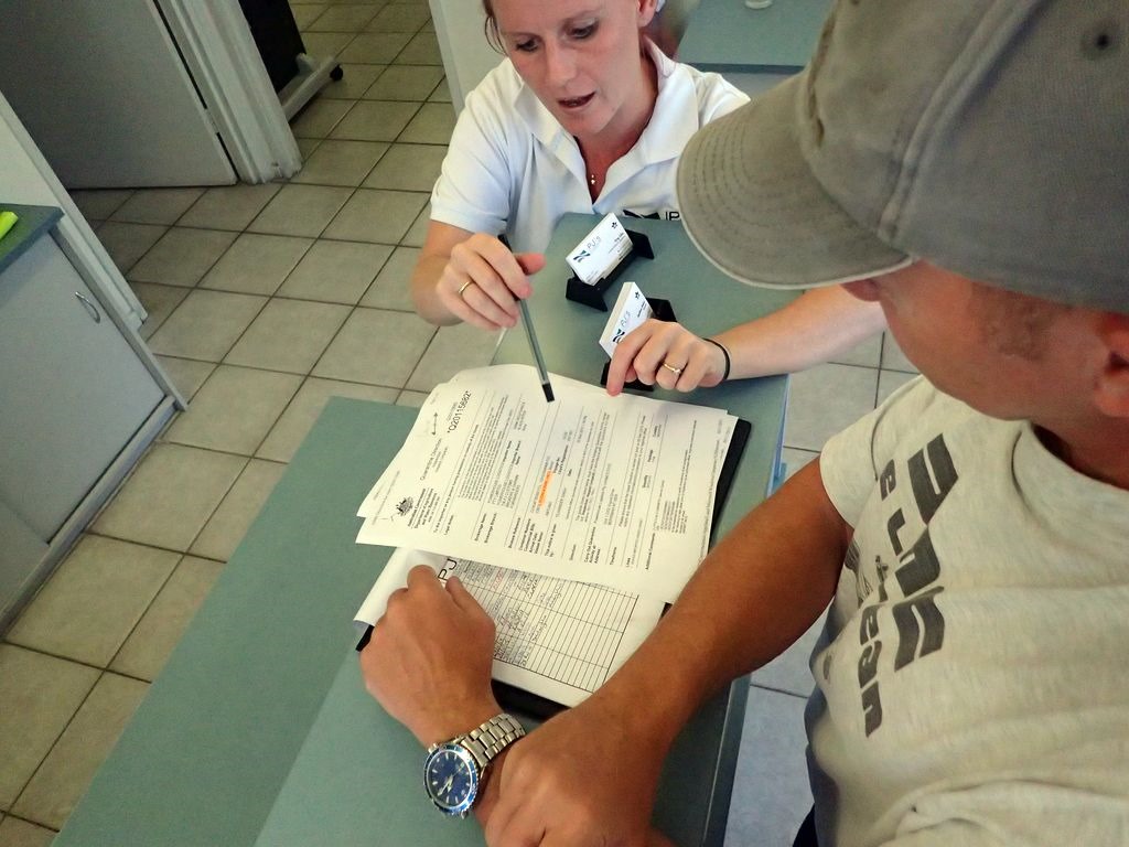 The examiners were friendly but they were very thorough to the point. Air filter, battery compartment under the battery, tents, sleeping bags, sleeping pads, first aid kit, warning triangles, medical kit, etc. - all this had to be dismounted or unpacked for examination. Some cavities in the frame, the radiator and a few corners at the engine got no mercy, they have to be re-cleaned. We have an appointment tomorrow morning, because the cleaning is not allowed to take place in the Shipping Agency, it have to be done in the port area. Only the objected parts will be checked then.