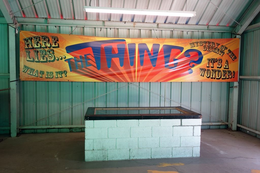 Because we had to refuel anyway, we stopped at the rest area and bought an admission ticket for one dollar . 'The Thing' turned out as an old Indian mummy amidst and a collection of old rummage...