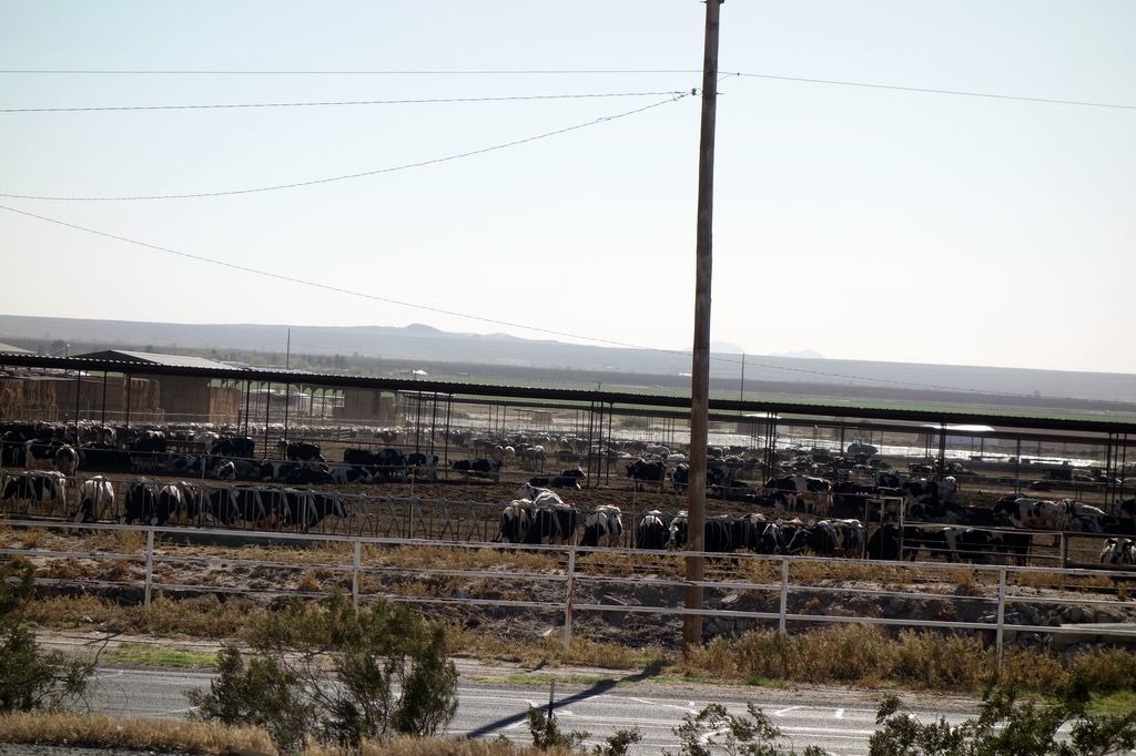 Shortly before the day's destination El Paso, we drove through Las Cruces, there was a huge inlclosure at the side of the Interstate with thousands and thousands of cattle, and it stank mightily. That means: close windows and air condition on recirculating air ...