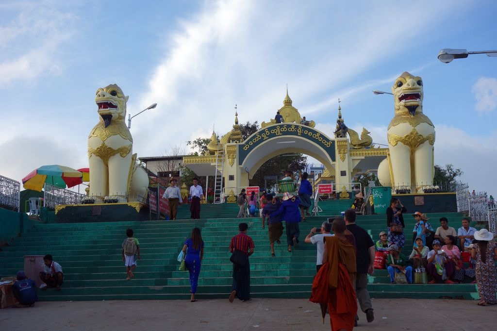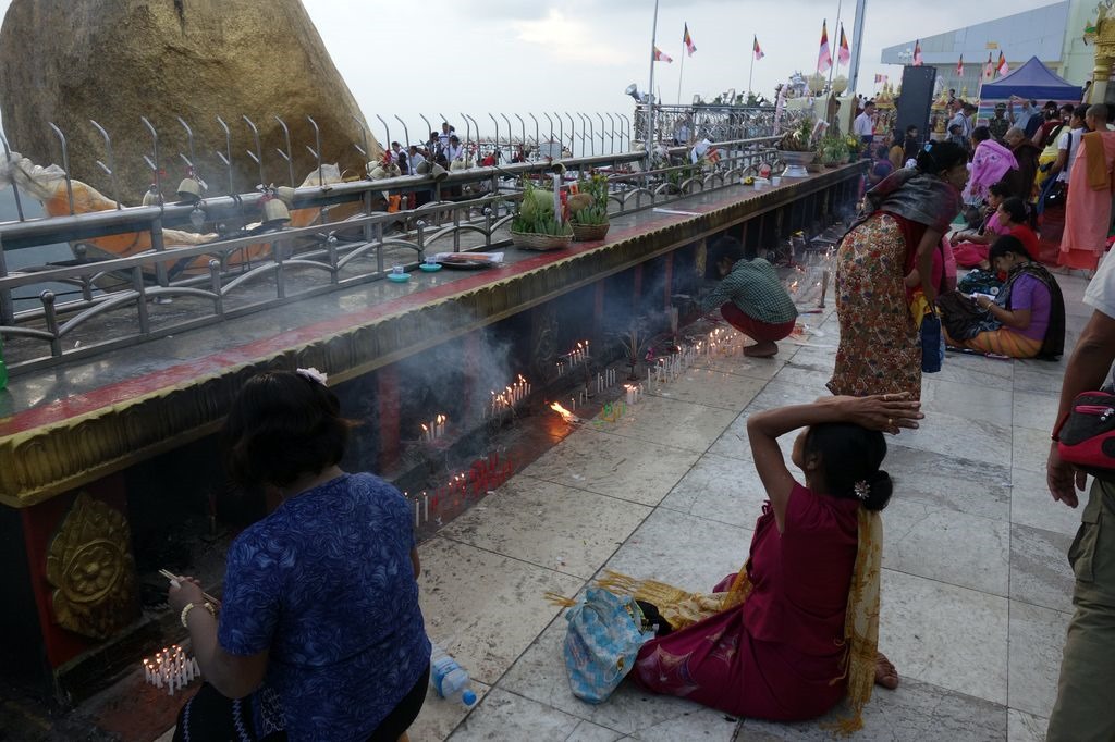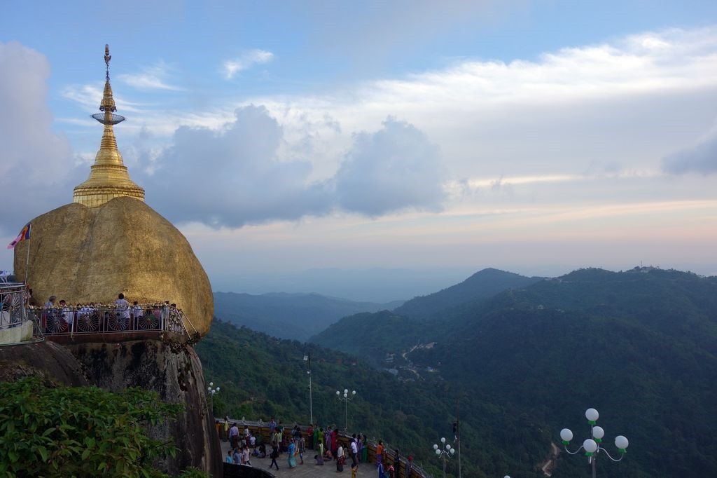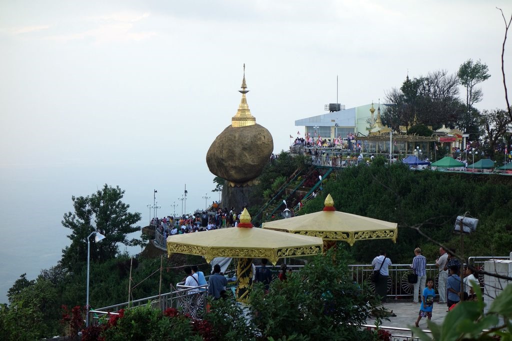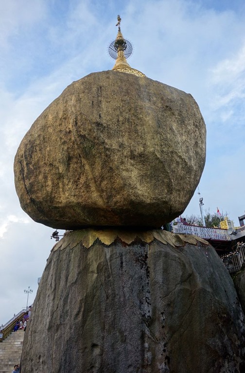 In the golden Stupa, which is built on the rock, there is a golden hair of Buddha being adored. The overhanging rock is only fixed by a few points but survived earthquakes and storms unscathed. That’s why it’s considered to be holy. It’s called the “Golden Rock” because the Buddhist pilgrims are decorating it with gold leaf.