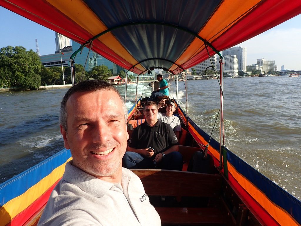 After checking in at the hotel we headed directly to experience something Bangkok sightseeing. With a longtail boat we drove over the Chao Phraya River and into neighboring Khlongs, followed by a visit to the temple WatPhoo with the famous Lying Buddha at. Riding back to the hotel we used a traditional Thai tuk-tuk whose driver drove us rapidly through the streets of Bangkok.