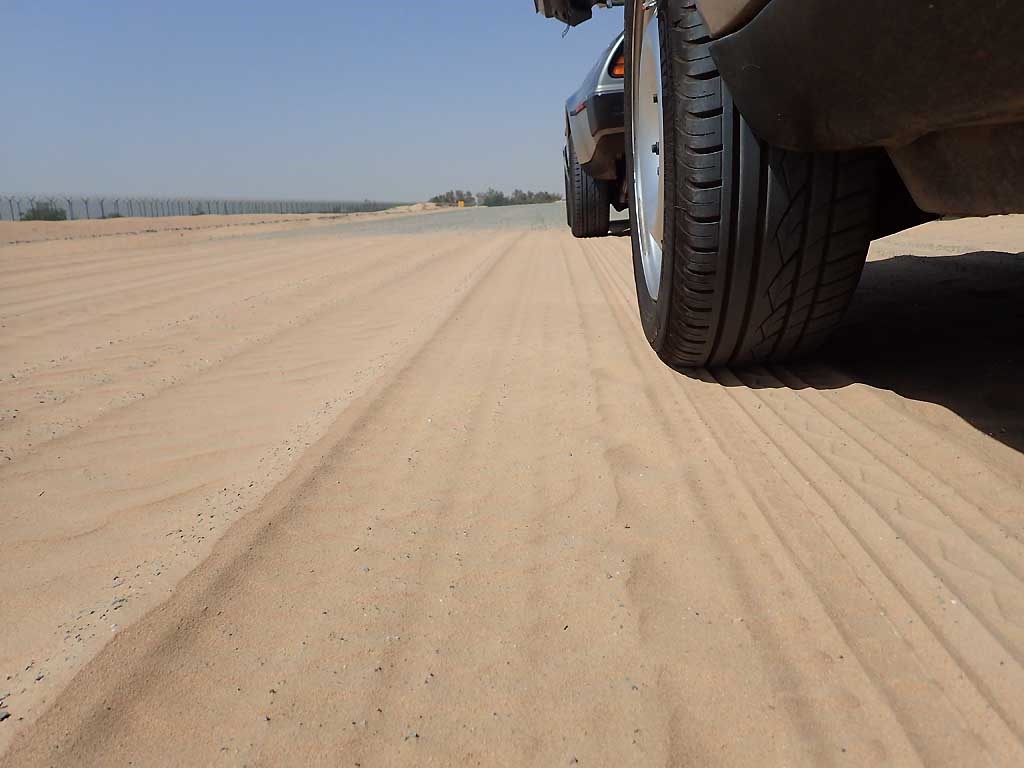 The highway from Dubai to Abu Dhabi goes along the coast , left and right there is only desert landscape